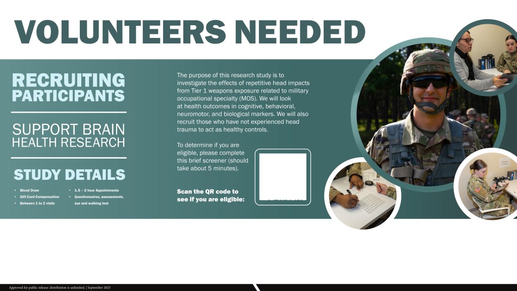 The Brain Health Recruitment Program required close coordination with clinicians conducting the study and communications leadership to develop materials for social media, presentations, and business cards. The project’s primary goal was to inform military personnel about the study and encourage their participation. I was responsible for designing all assets and collaborating with stakeholders to ensure each deliverable aligned with their objectives.